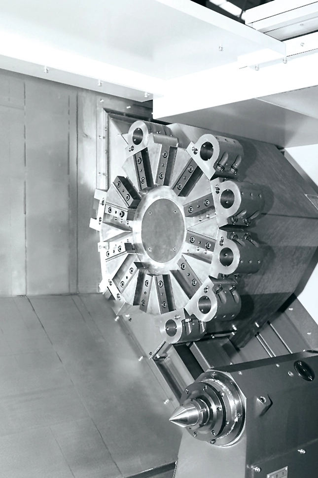 12-позиционная сервоприводная револьверная голова с 12-ю приводными позициями, обеспечивает большую точность и скорость работы по отношению к гидравлической.