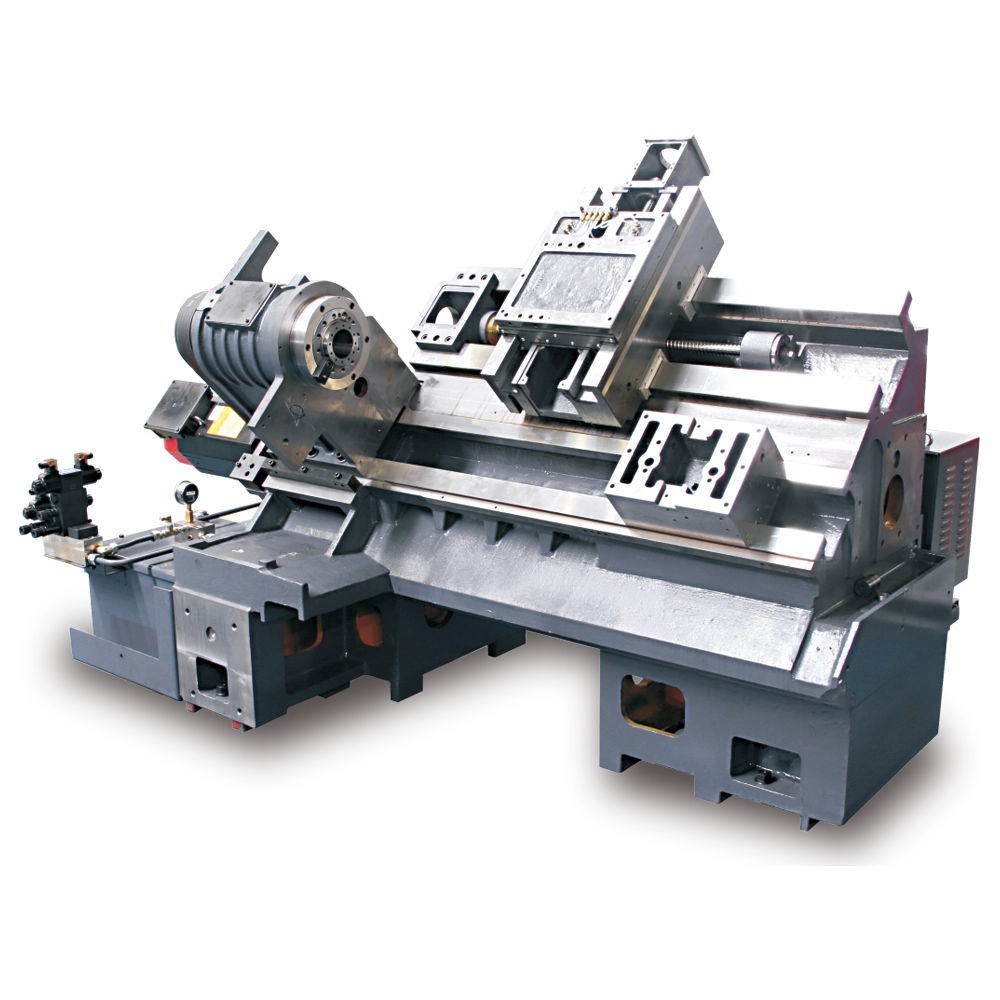 Встроенная цельнолитая L-образная наклонная станина под углом 45° изготовлена из высококачественного чугуна, обеспечивает высокую жесткость станка.
